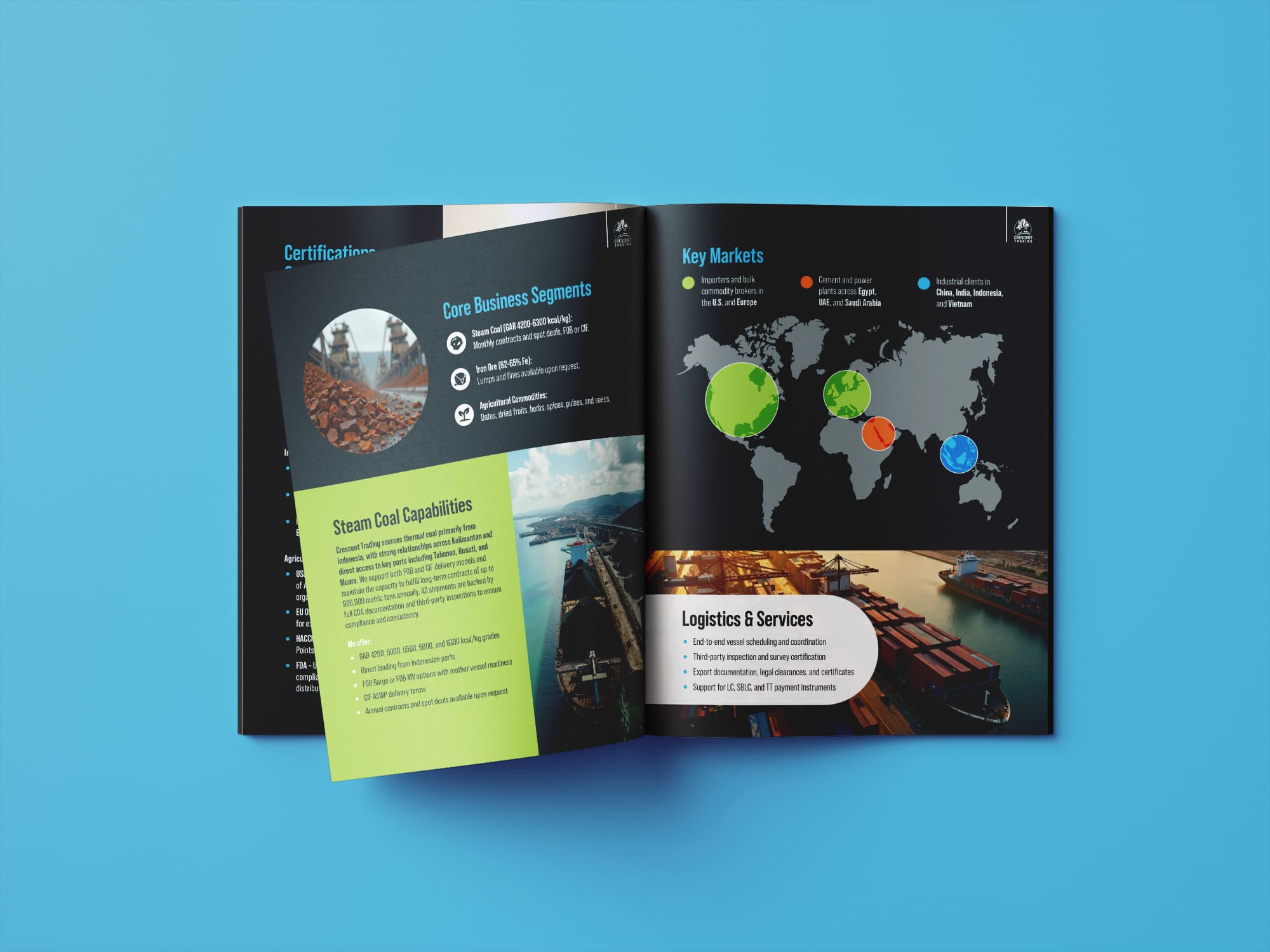 2025 | Created a sleek Company Profile document for Crescent Trading, tailored to the B2B commodities and export sector. Designed to appeal to international clients, the document balances professionalism with visual impact, aligning closely with the brand’s identity and industry standards.